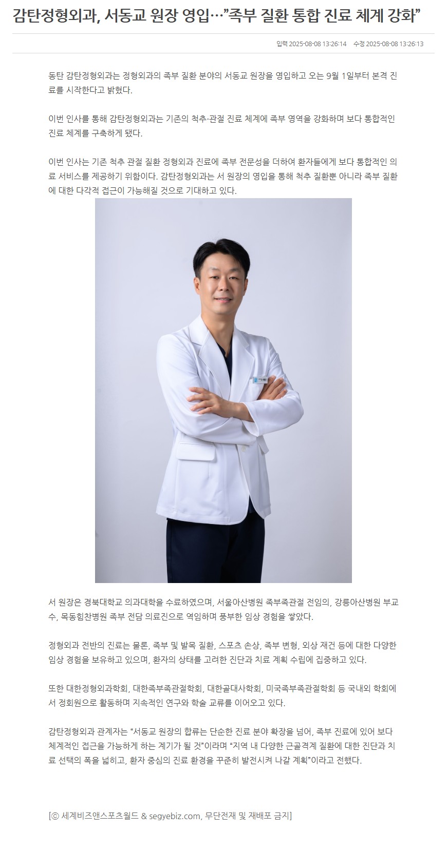 감탄정형외과, 무릎인공관절 수술 전문 유재중 원장 초빙 / 스포츠경향