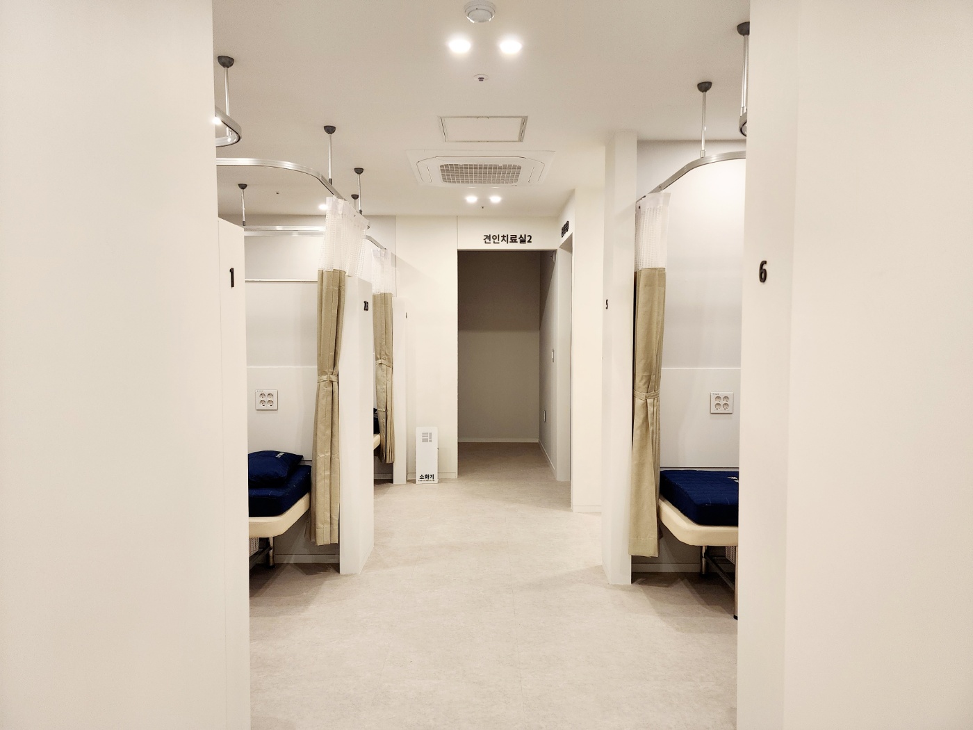 기존에 8개 였던 기본 물리치료 침대를 8개에서 16개로 2배로 추가 하였으며, 모든 치료 베드에 두타 마사지 기능이 추가 된 마사지베드를 추가하여 환자분들이 좀 더 쾌적한 환경에서 긴장을 해소할 수 있도록 설계하였습니다.