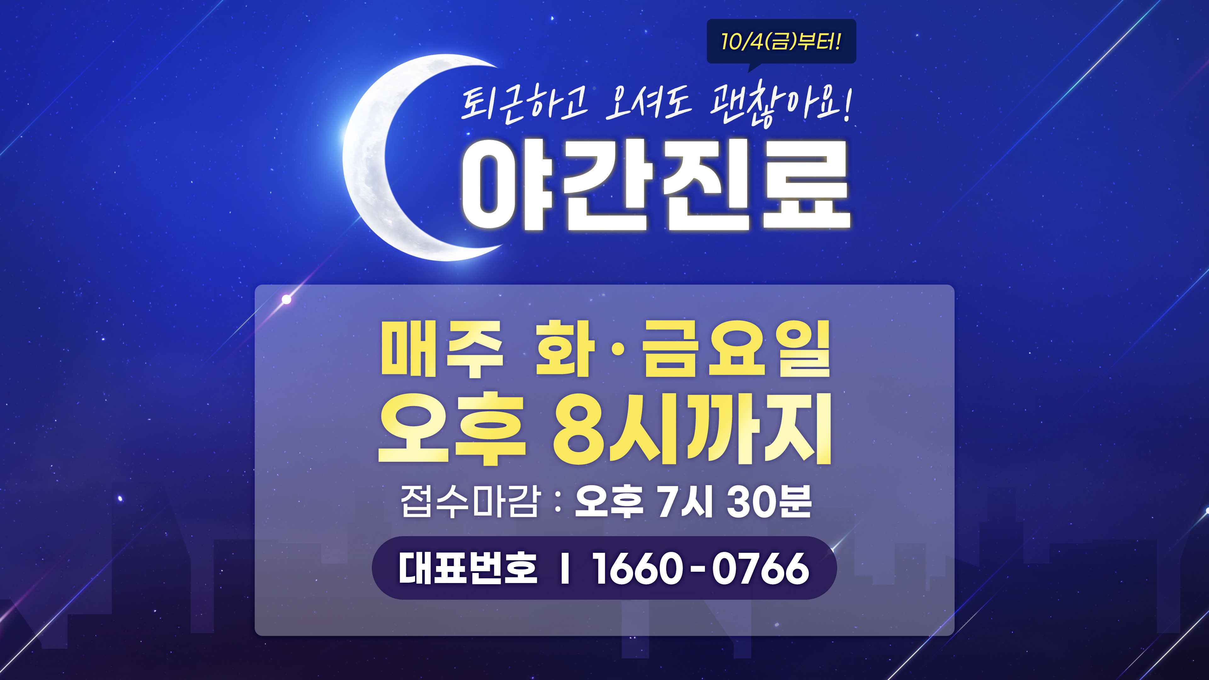 * 야간진료(화요일 : 김건우 / 금요일 : 강진우)