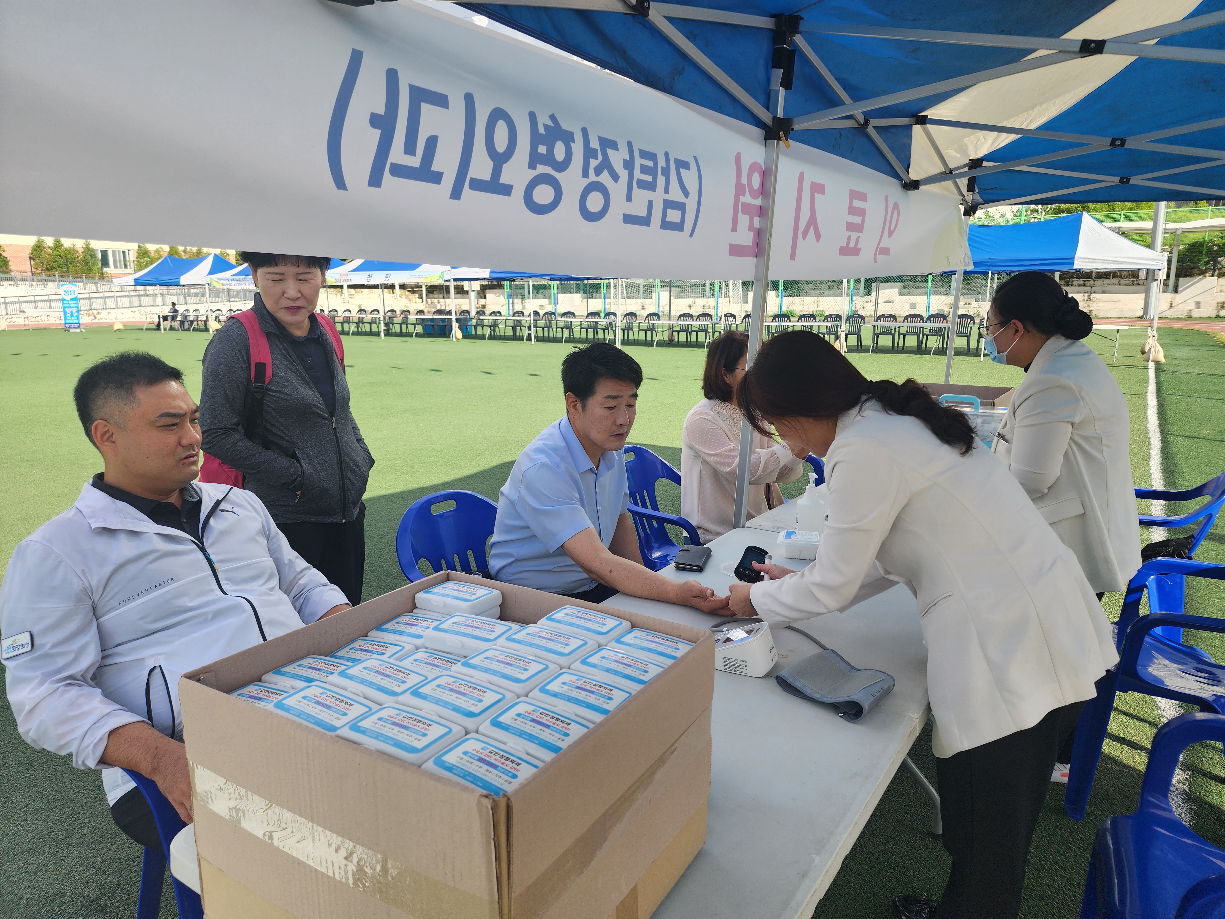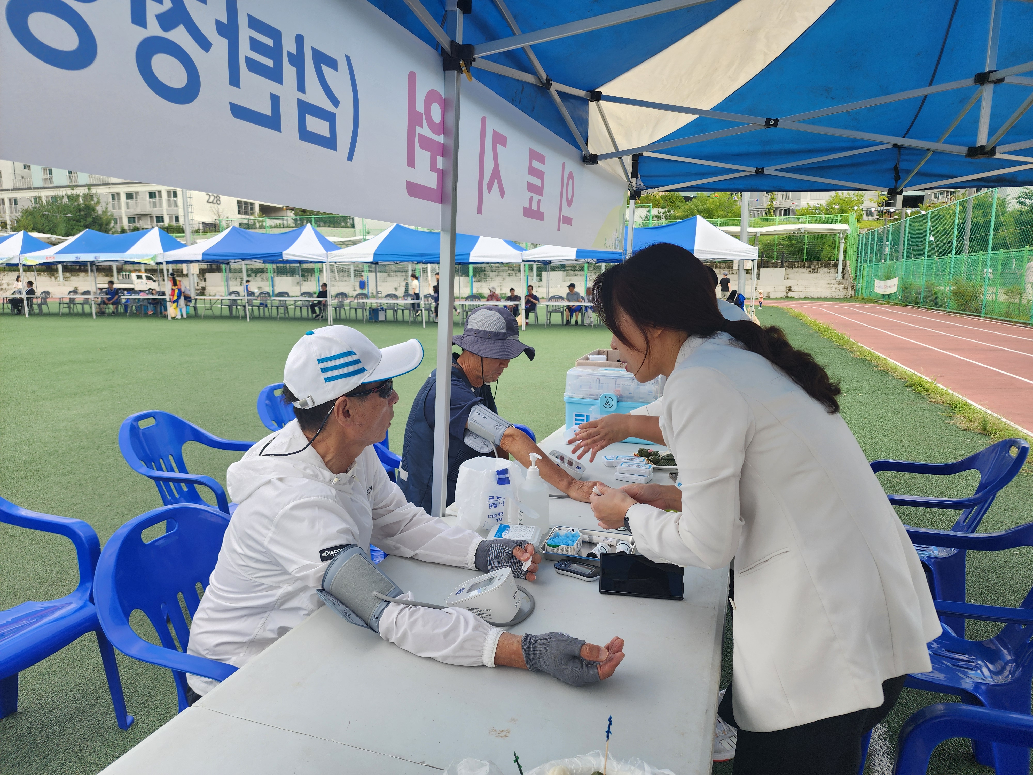 감탄정형외과는 본 행사에 의료지원을 하여 혹시모를 응급상황에 대비하고 체육대회 중 다치신 분들의 응급처리를 도왔습니다. 그 외 지역주치의병원으로서 혈압 혈당체크를 해드리며 건강상태까지 체크해리며 모두가 즐겁게 체육대회를 즐길 수 있도록 하였습니다.