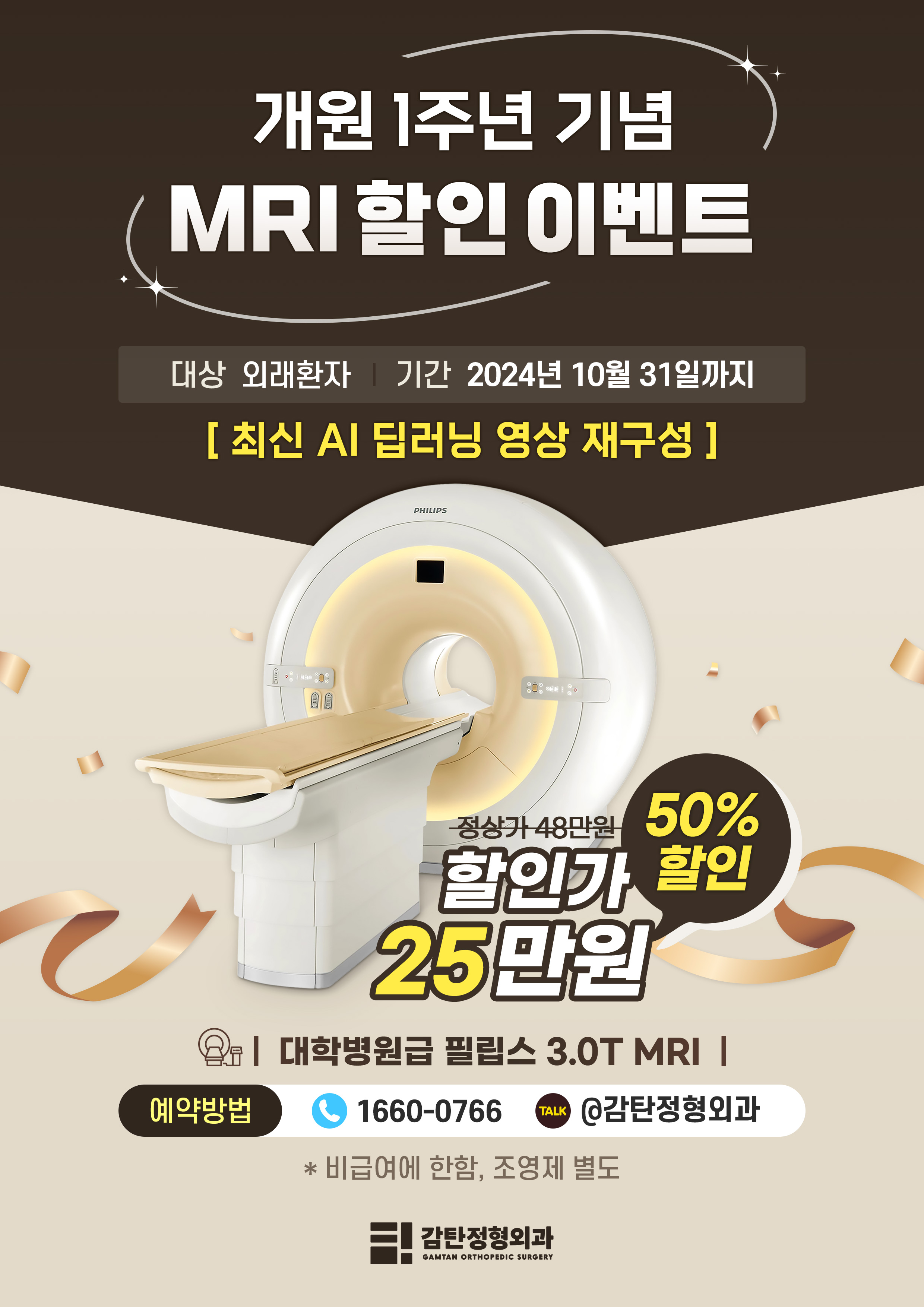 제목 MRI 50% 할인 이벤트 (10월 한달간)