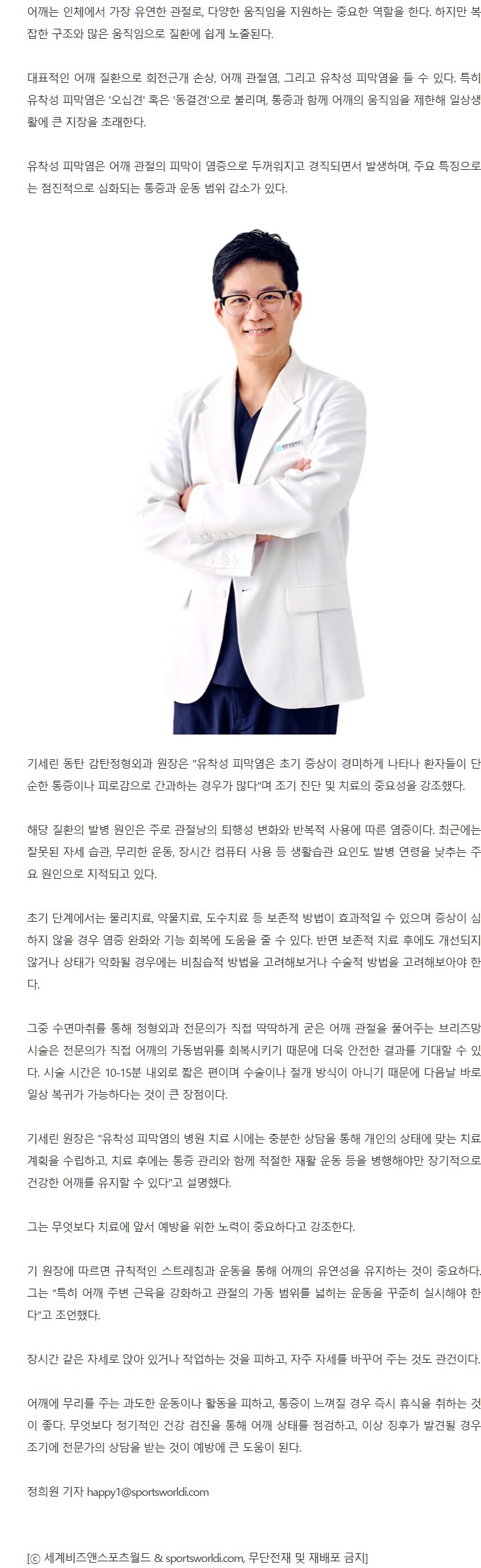 제목 '오십견'으로 알려진 유착성 피막염, 조기 치료가 관건