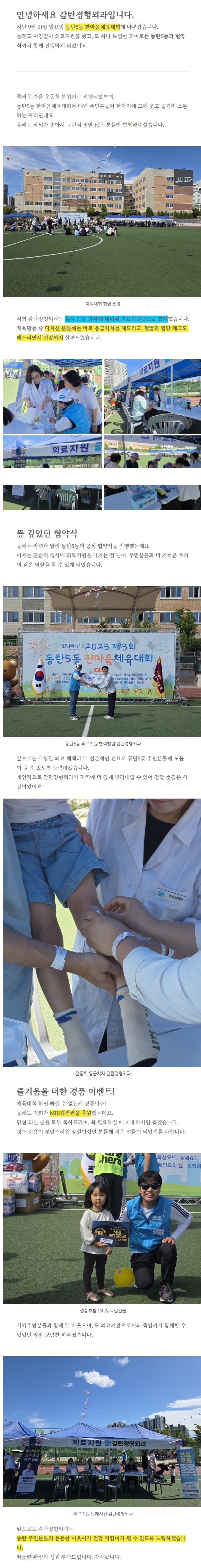 제목 동탄5동 한마음체육대회 의료지원 및 협약식 진행