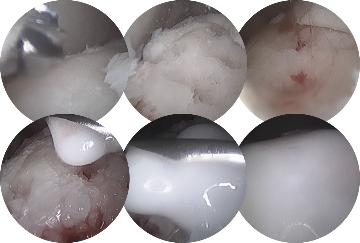 연골 재생술을 같이 하는 것이 계획되었다면 콜라겐 혹은 줄기 세포로 결손부위를 도포해줍니다.