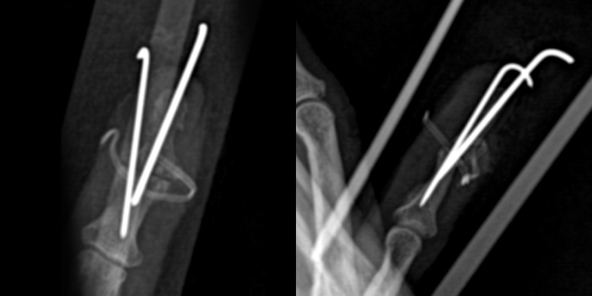 통증은 사라지고 휘어졌던 손가락이 일자가 되지만 끝마디 굴곡이 불가능해집니다. 직업적인 필요에 따라 굽힌 상태로 굳힐 수도 있으나