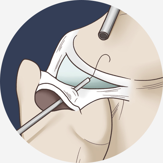 파열된 인대를 뼈에 부착시켜주기 위하여 골터널을 이용하여