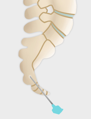 주사 바늘이 달린 특수 카테터를 꼬리뼈를 통해 환부에 직접 삽입해