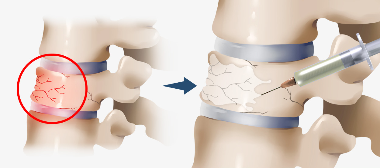 척추뼈에 척추 뼈 강화제(골시멘트)를 넣어주는 시술로, 척추뼈가 더 이상 주저앉는 것을 최대한 막고 초기단계에서도