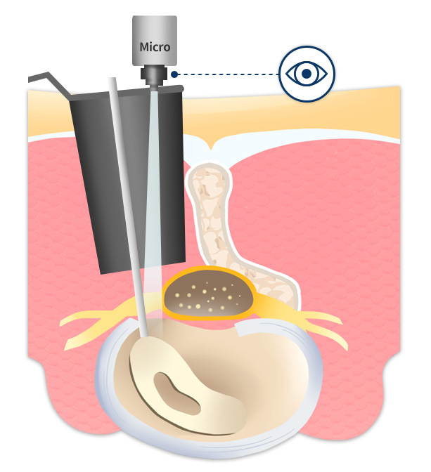 병변 부위에 1~2cm 구멍 4개를 뚫어 통증을 일으키거나 손상된 뼈 또는 디스크를 제거하고