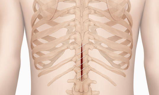 통증을 일으키거나 손상된 뼈 또는 디스크를 제거하고 인공구조물을 삽입한 후 나사못으로 척추를 고정하는 수술입니다.